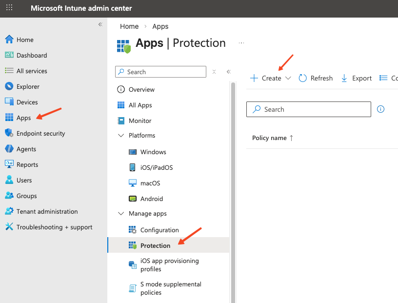 1. Navigate to App Protection Policies
